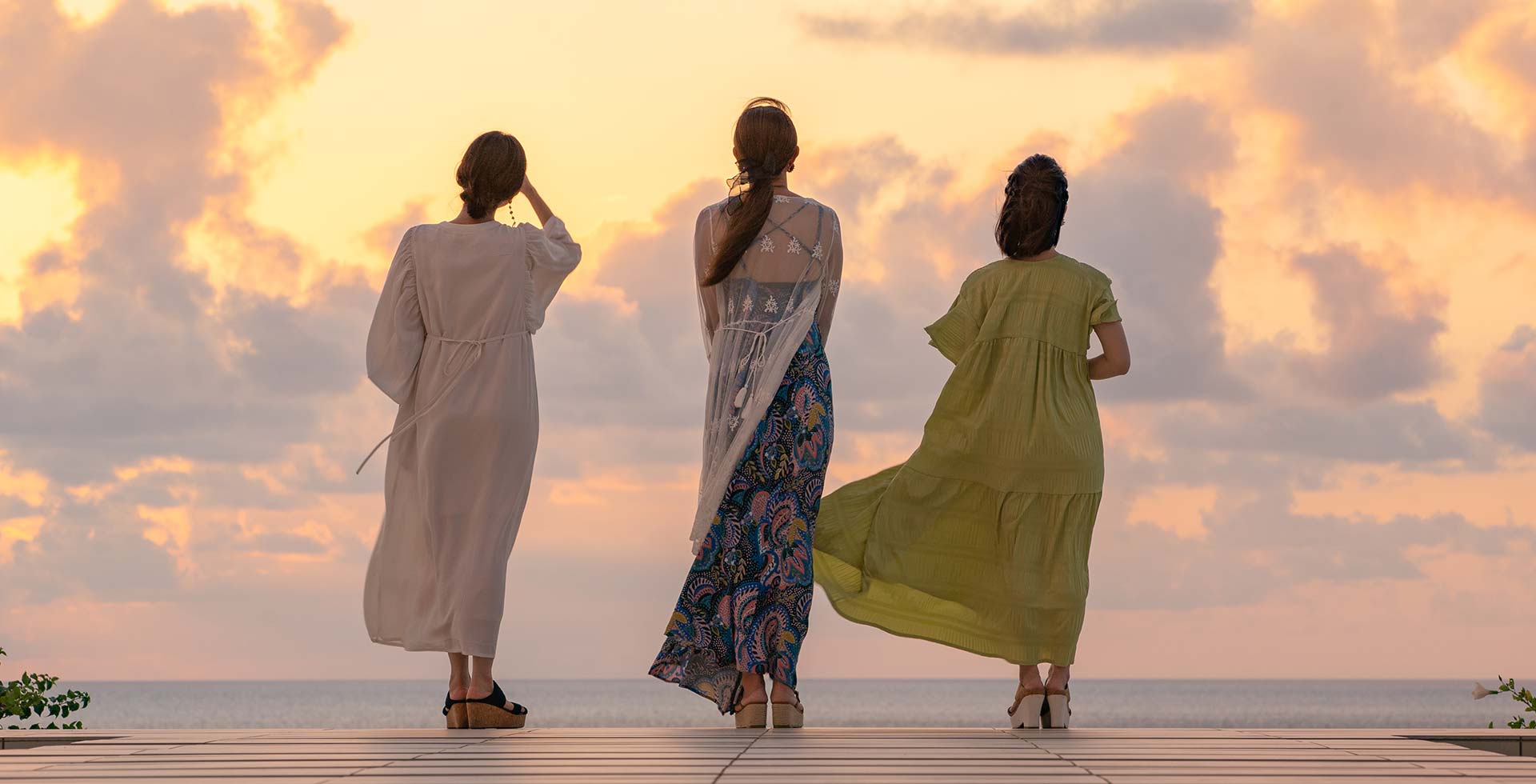 七色のサンセットと満天のスターダスト、海と空と雲と太陽のコントラスト、その日によって配色が変わる七色の夕日。