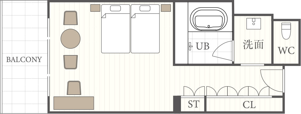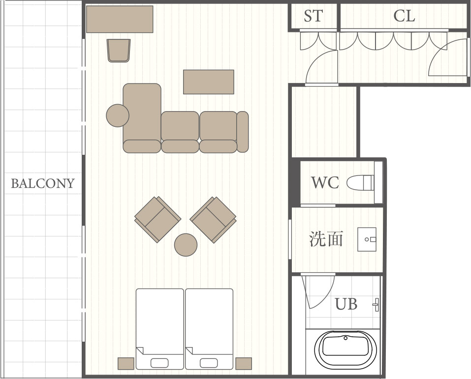 ※お部屋によっては家具の配置等、若干異なる場合がございます。