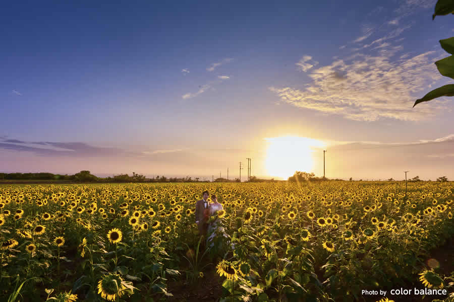 太陽の島、来間島でひまわりの写真を撮ってください!