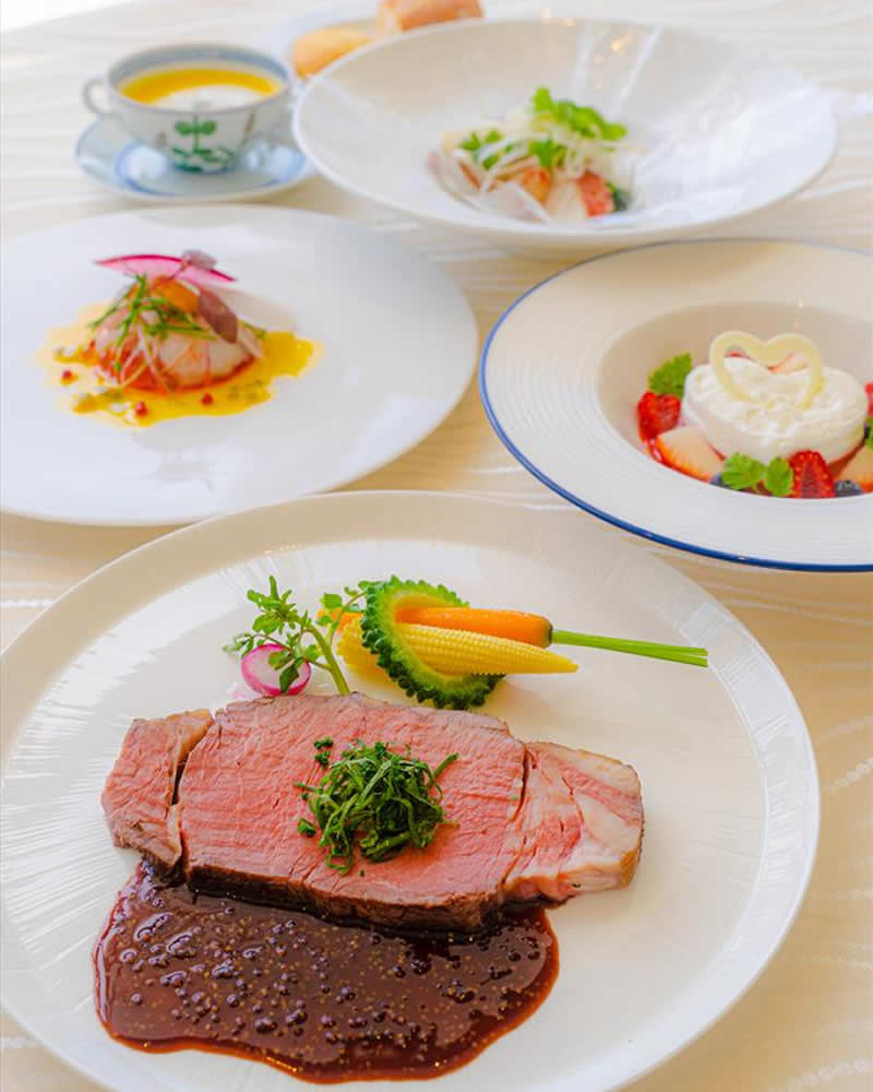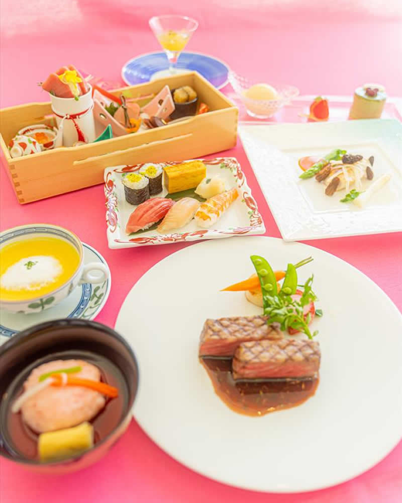 フランス料理、日本料理、和洋折衷、ウェディングケーキ、お子様料理、ドリンク