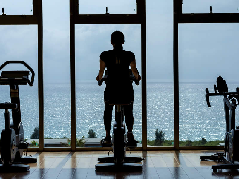 最新式マシンが並ぶ、東シナ海を一望できる開放的な空間。